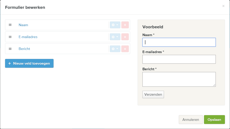 Nadat je het element toegevoegd hebt, veel zaken aan je formulier aanpassen.